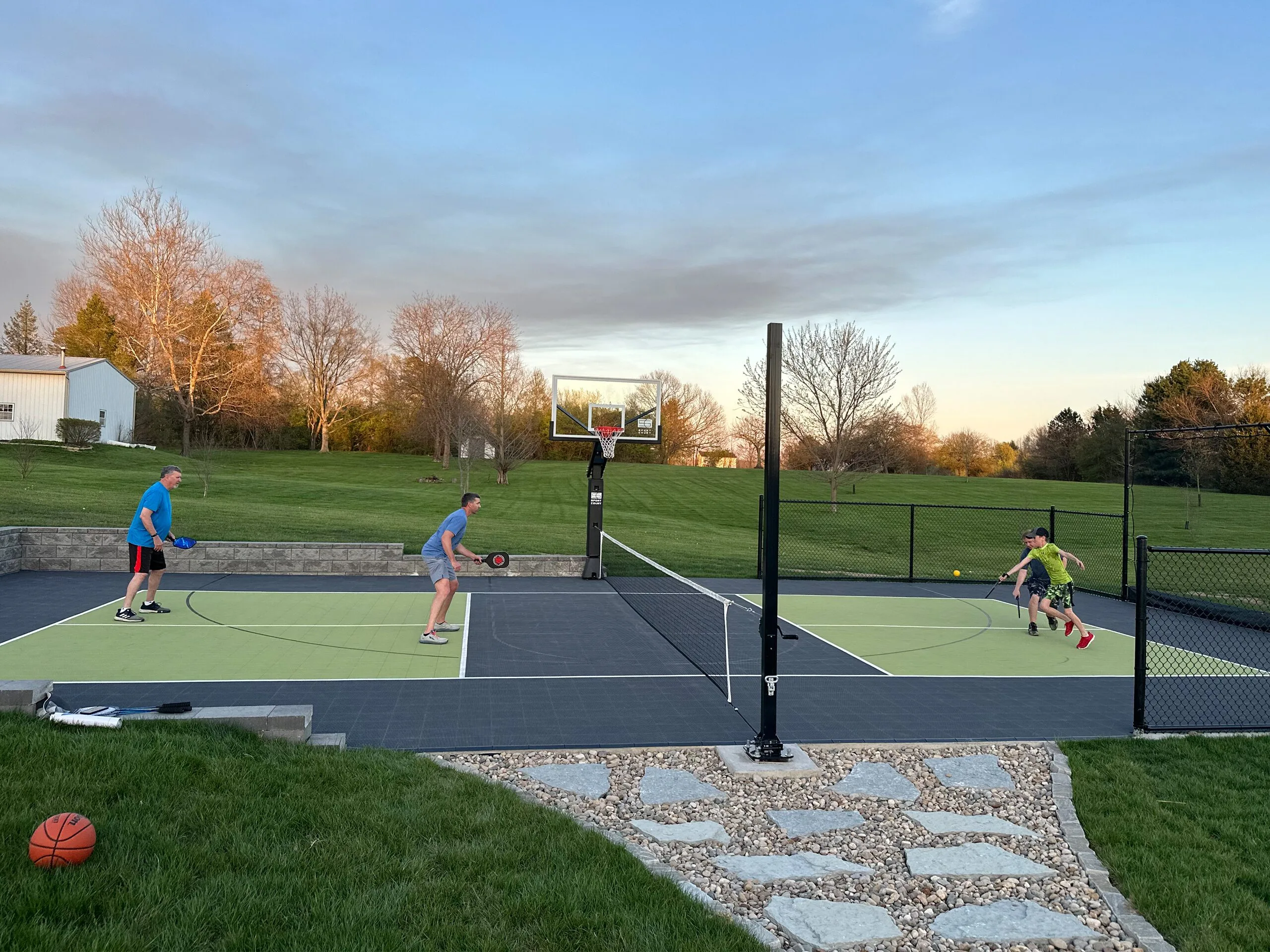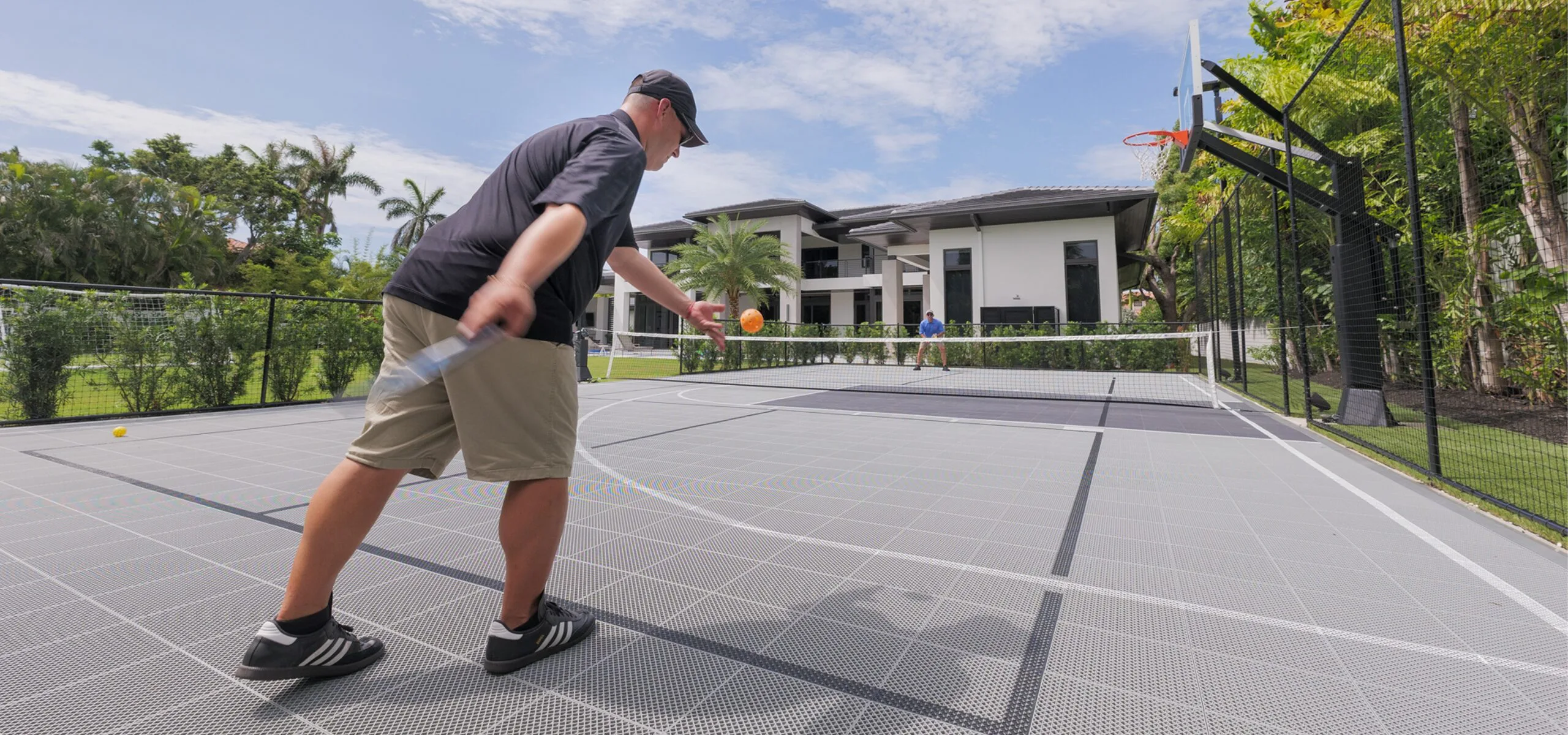 By creating your own pickleball court at home, you can design the optimal indoor or backyard pickleball court using dimensions that fit your space—and you can play a game whenever you want. Our playing surfaces are also versatile enough for other paddle sports, like paddle ball, badminton, and tennis.