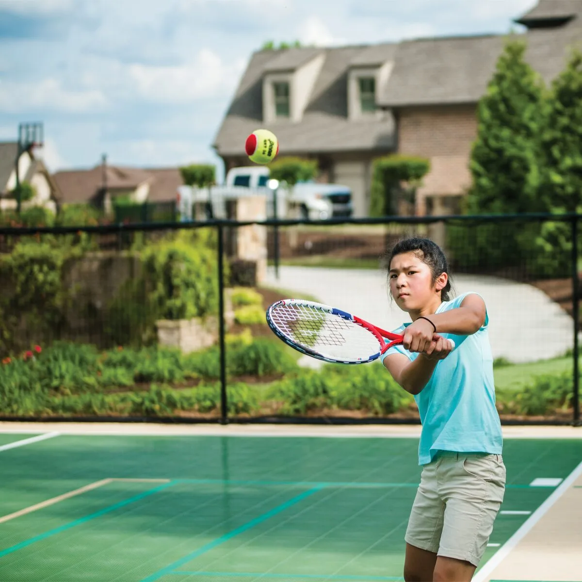 Sport Court surfaces are easy to maintain. Unlike acrylic courts that require more upkeep, the only work your court from Sport Court needs is an occasional quick wash. Or you can work with your CourtBuilder on maintenance package.